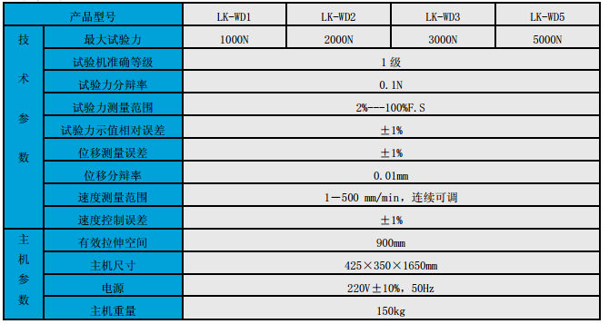 LK-WD系列微机控制电子拉力试验机(单柱式)主要用于金属丝、金属箔、塑料薄膜、胶粘剂、人造板、电线电缆、防水材料等