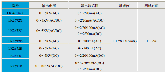 LK267X系列耐电压测试仪是按照《JJG795-2004耐电压测试仪检定规程》设计而成的,具有使用方便,性