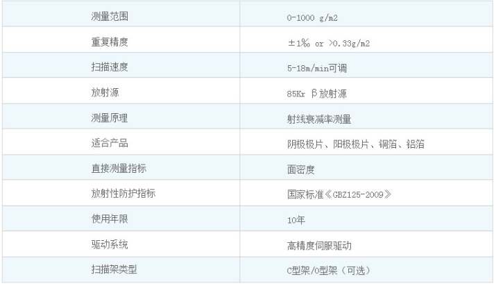 1、测量原理:单位面积上极片的质量,称为极片的面密度。极片的面密度是决定电池的一致性的最重要的因素。由